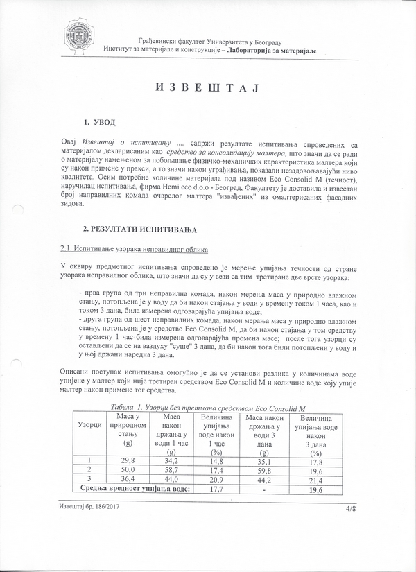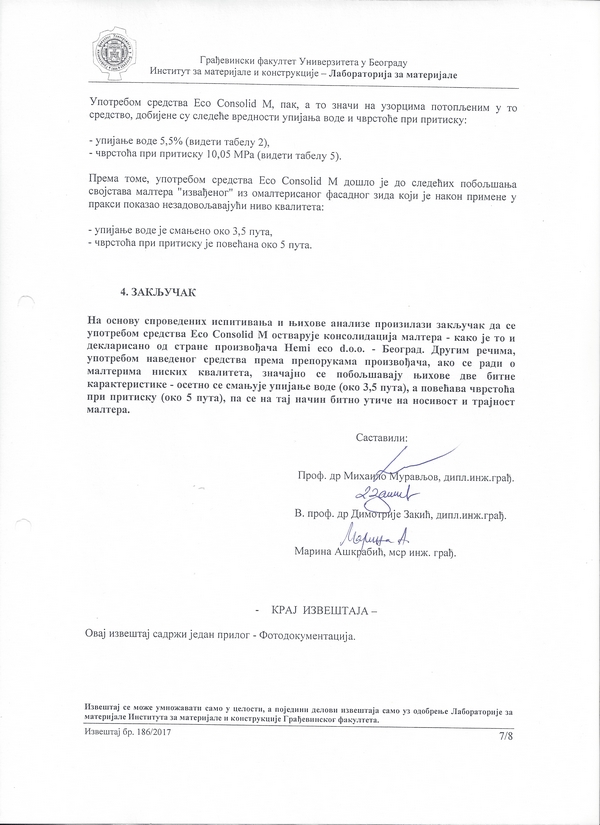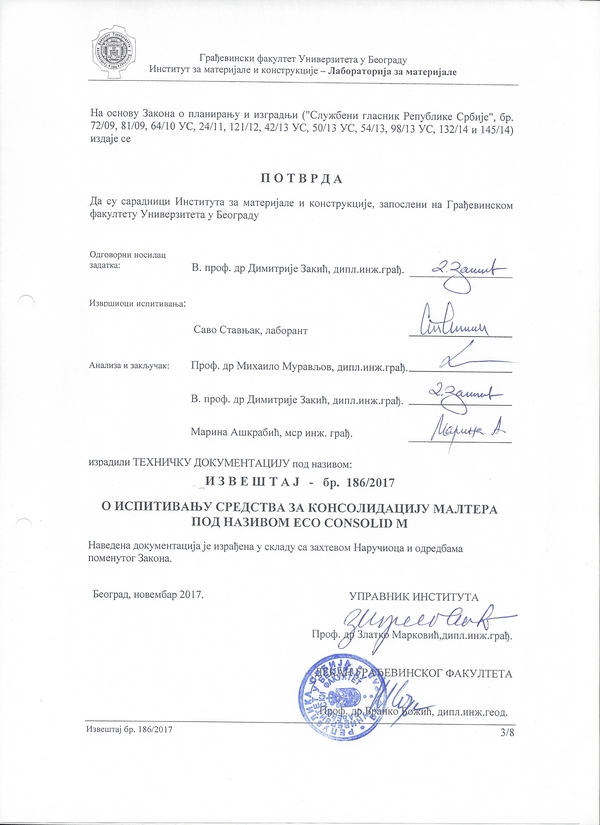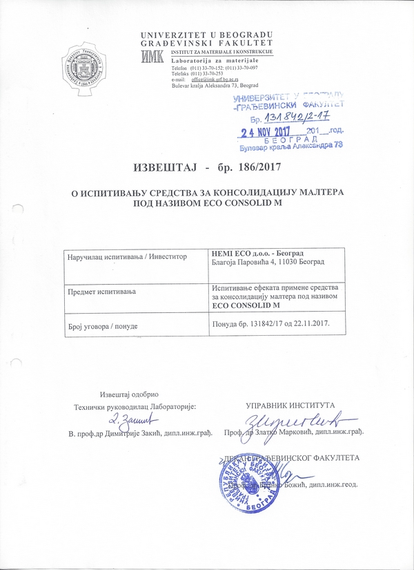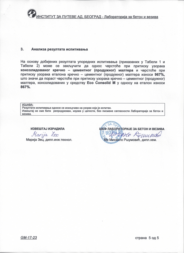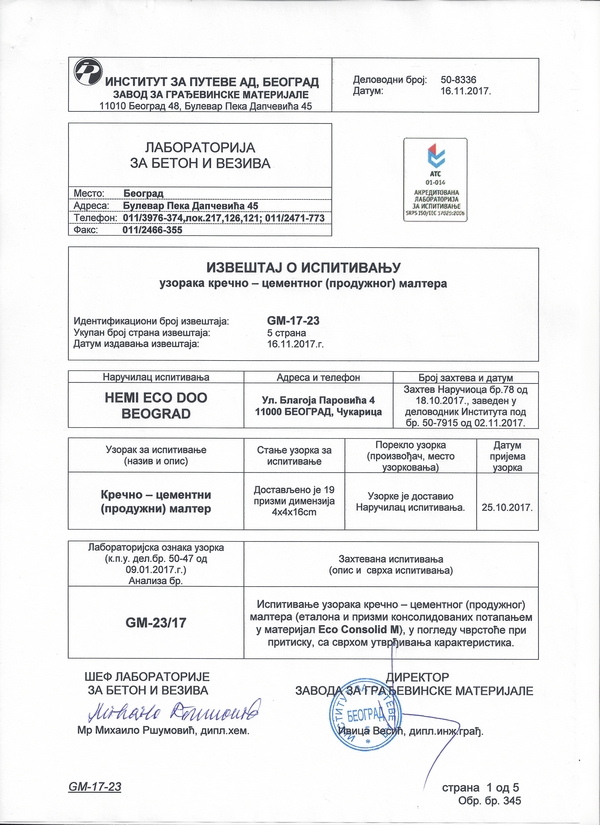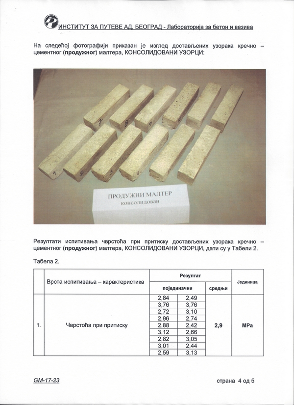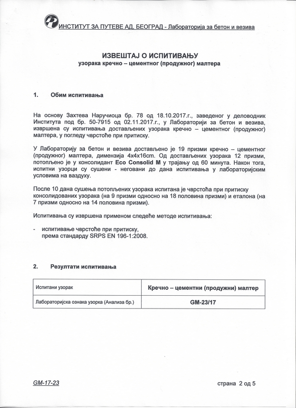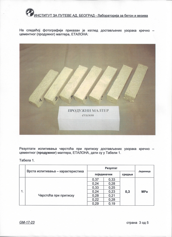 Институт за путеве а.д. - Београд: Кречнo-цементни (продужни) малтер