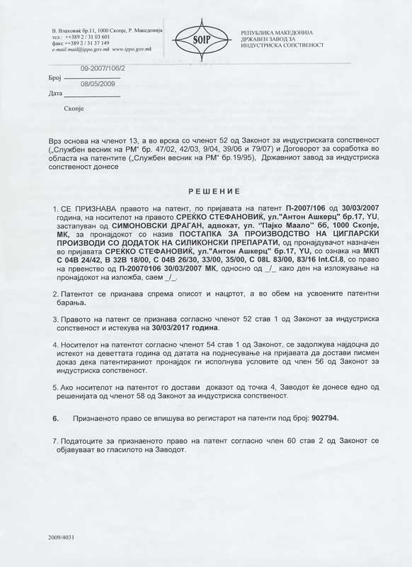 Овакав поступак производње опекарских производа доводи до значајне уштеде енергије, смањења времена потребног за производњу, као и до смањења трошкова транспорта, а готов производ задовољава прописане стандарде. Смањењем потрошње горива смањује се и количина ослобођеног угљен-диоксида по јединици производа.