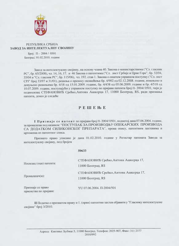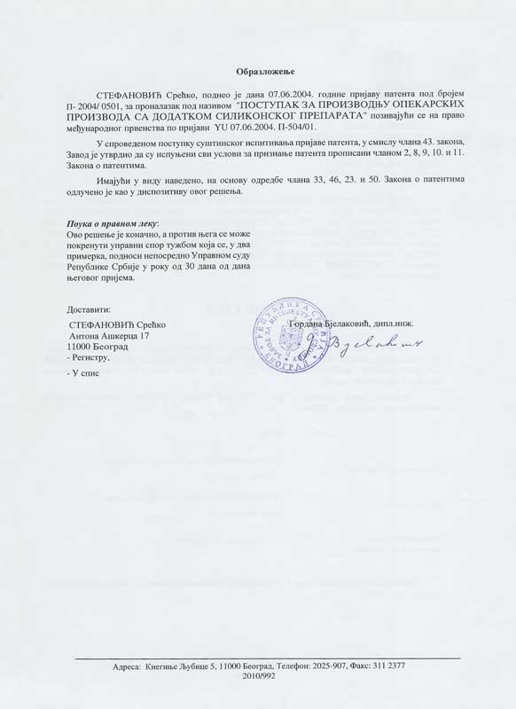 Проналазак се односи на поступак за производњу опекарских производа са додатком силиконског препарата у циљу коришћења широке лепезе сировина, а за добијање различитих опекарских производа. Новина у овом проналаску је употреба специјалног силиконског препарата (трговачки назив Caloxan) који се додаје у количини од 3%mas. у односу на суву материју од које се производе опекарски производи, чиме се постиже следеће: