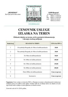 Cenovnik usluge izlaska na teren se nalazi u produžetku stranice.